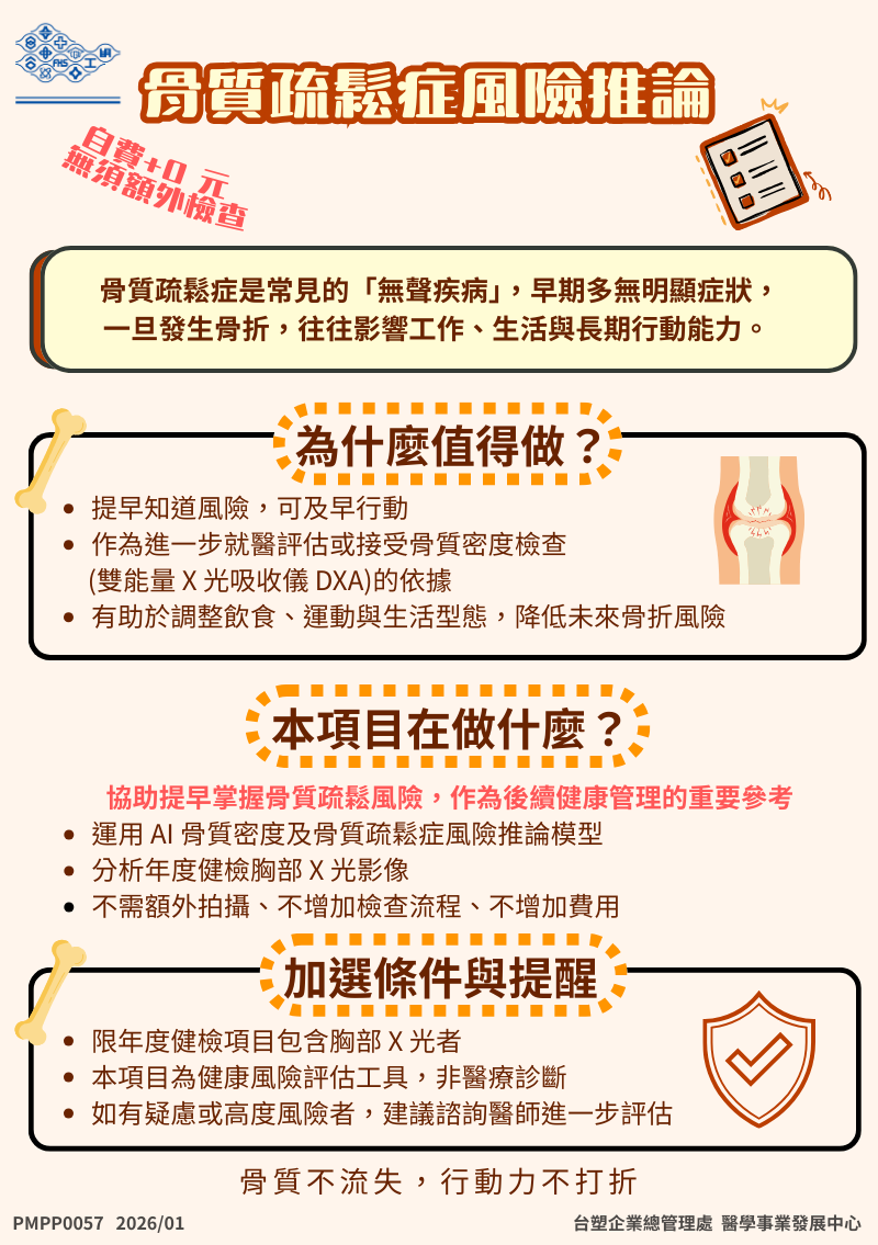 台塑企業員工骨質疏鬆症風險推論健康檢查自費加做項目說明